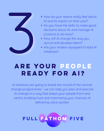 Alongside professional delivery or technical qualifications all of our consultants have undertaken AI specific training, are trained in the use of our AI Enablement Model, and attend regular FFF training workshops to ensure their AI product; regulatory and best practice knowledge remains up to date.